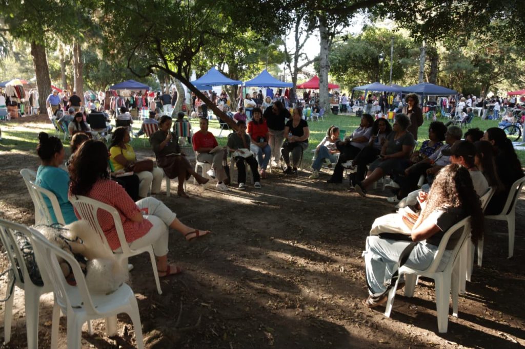 Ao todo foram realizadas quatro rodas de conversa, com temáticas diversas, contemplando o público que frequentou o Parque durante todo o dia, discutindo assuntos como mulheres e desastres naturais em Pelotas e os impactos da crise climática sob a perspectiva de gênero, um uma participação da Defesa Civil do Município, práticas para diminuir a ansiedade e a importância de desconectar do celular e uma conversa com o Conselho Municipal dos Direitos da Mulher de Pelotas (Comdim) e outra com a Profª Prince Dias e a Escritora Thaiane Madruga.
